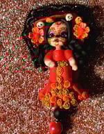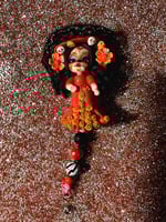 CATRINA STYLE BIG HAT BADGE HOLDER in celebration of the day of the dead .. Hand made sculpted with porcelain Clay hand painted and designed .. Comrs with retractable string for easy access to use for school or doors with badge comes with a easy clip to attach your uniform or on to your shirt .. Comrs with special me stylish beads to give it that extra pizazz to your badge .. All orders come with a FREE appreciation gift π