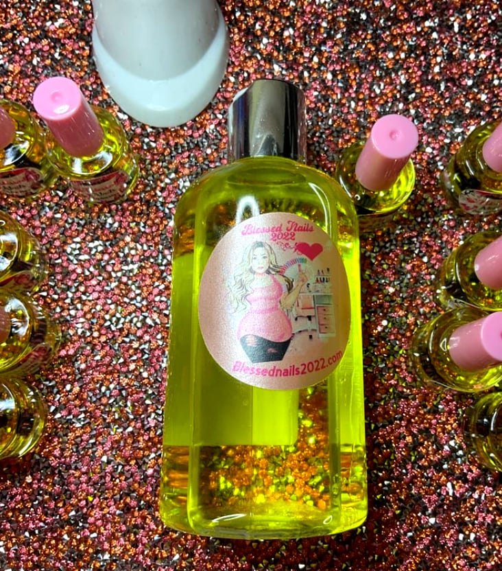 Brush on cuticle oil small bottle wish brush top .. Our cuticle oil is great hydrates the skin immediately does NOT leave a oily sticky residue .. Itβs vitamin E rich with ALOE VERA and pineapple scent .. This oil can be used as skin oil moisturizer and will hydrates