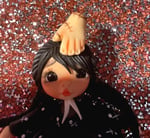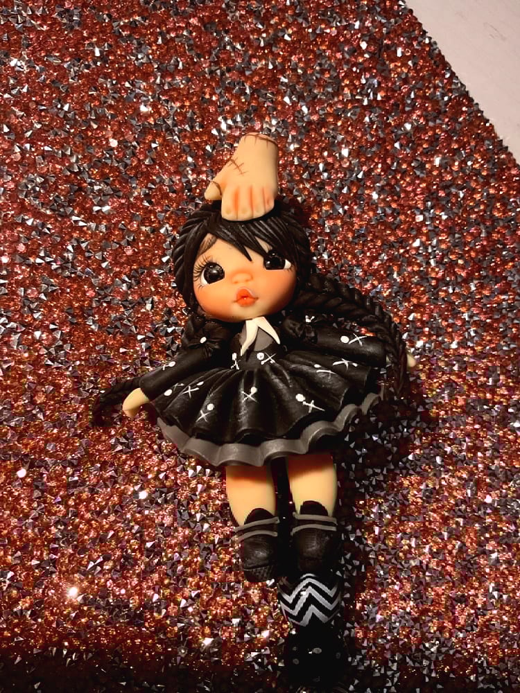 Hand made sculpted PORCELAIN CLAY Wednesday Adams doll hand painted with clip badge on back for easy use for work or to clip on shirts .. Comes with retractable string for work clock in for badges or for swiping for doors codes is made with fashionable beads to give it that extra cuteness look ..All orders come with a appreciation free gift